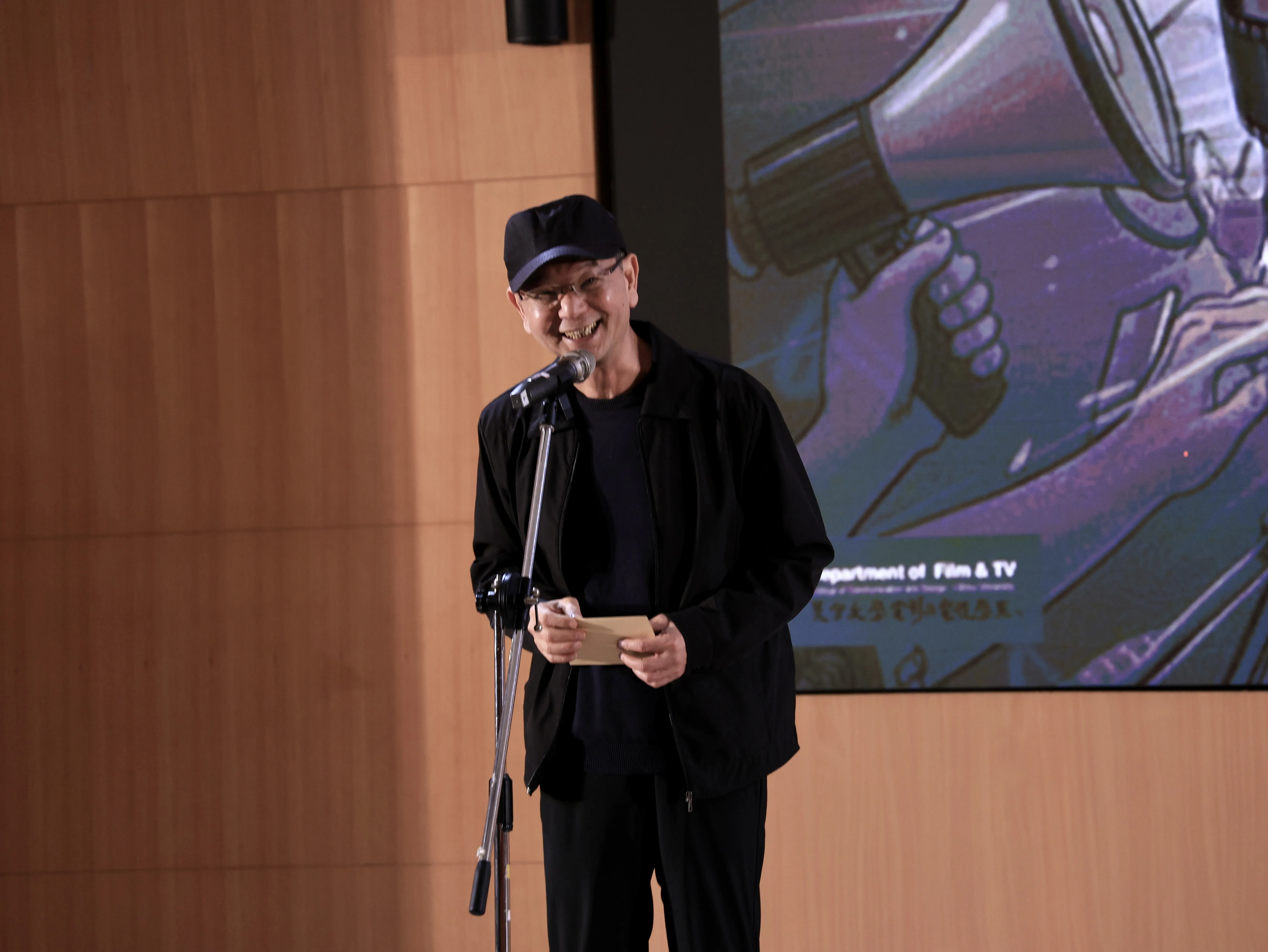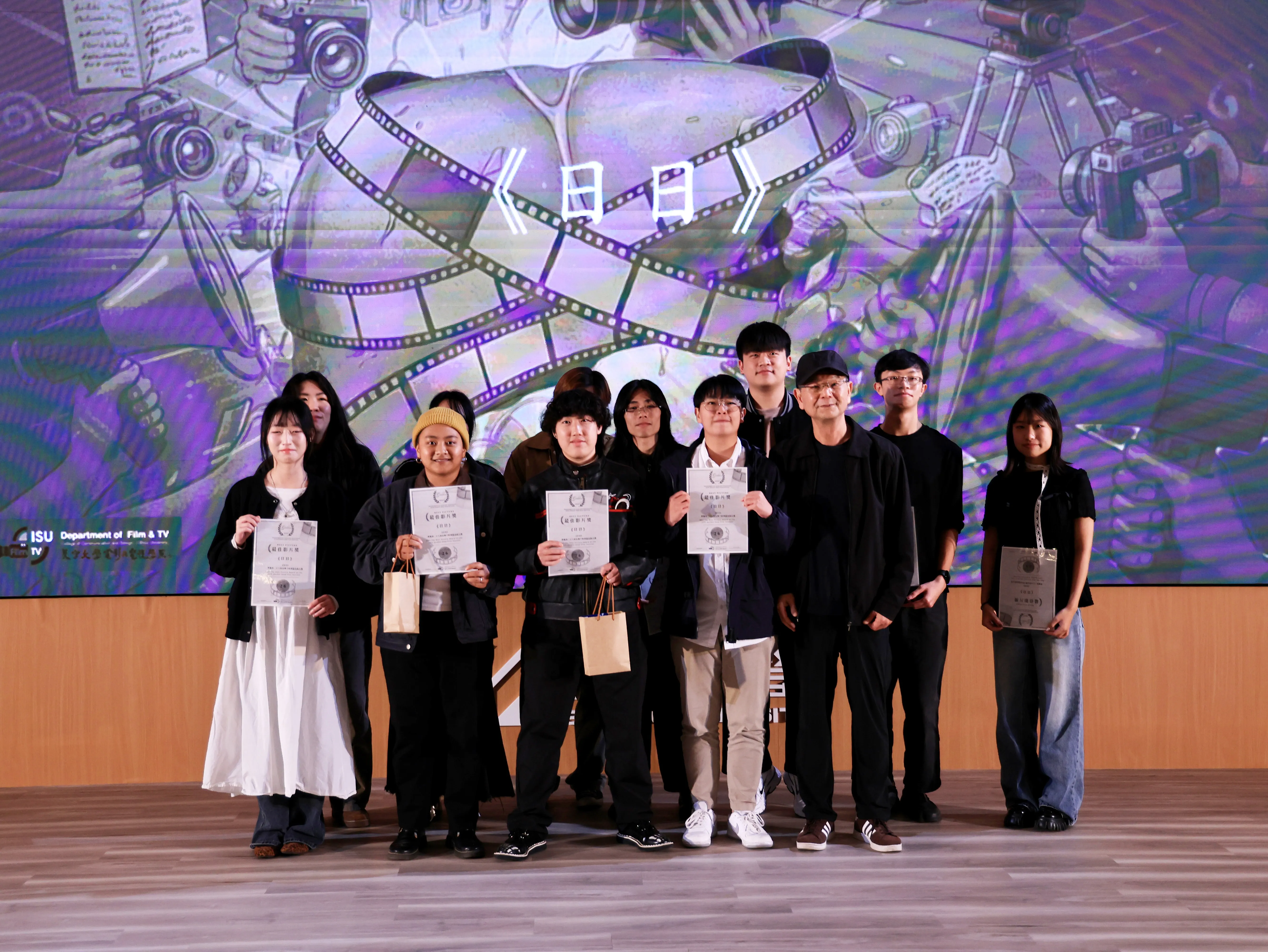 此外,本屆獎項中也出亦浮現多則轉學生在義守影視系重新找到創作熱情與方向的動人故事。榮獲「學期傑出創作人獎」的李哲銘同學,一年前毅然離開工業設計領域,選擇回歸影像創作之路,他表示,這項獎項不僅是對作品的肯定,更是對其人生轉折的重要鼓勵。同樣身為轉學生的林宏軒同學,從資訊背景跨足影視創作,最終以作品《聚光燈》奪得最佳剪輯獎,充分展現跨領域思維在影像節奏掌握與敘事結構上的獨特優勢。這些故事不僅見證學生勇於轉換跑道、追尋熱情的決心,也彰顯義守大學影視系包容多元背景、激發創作潛能的教育價值。