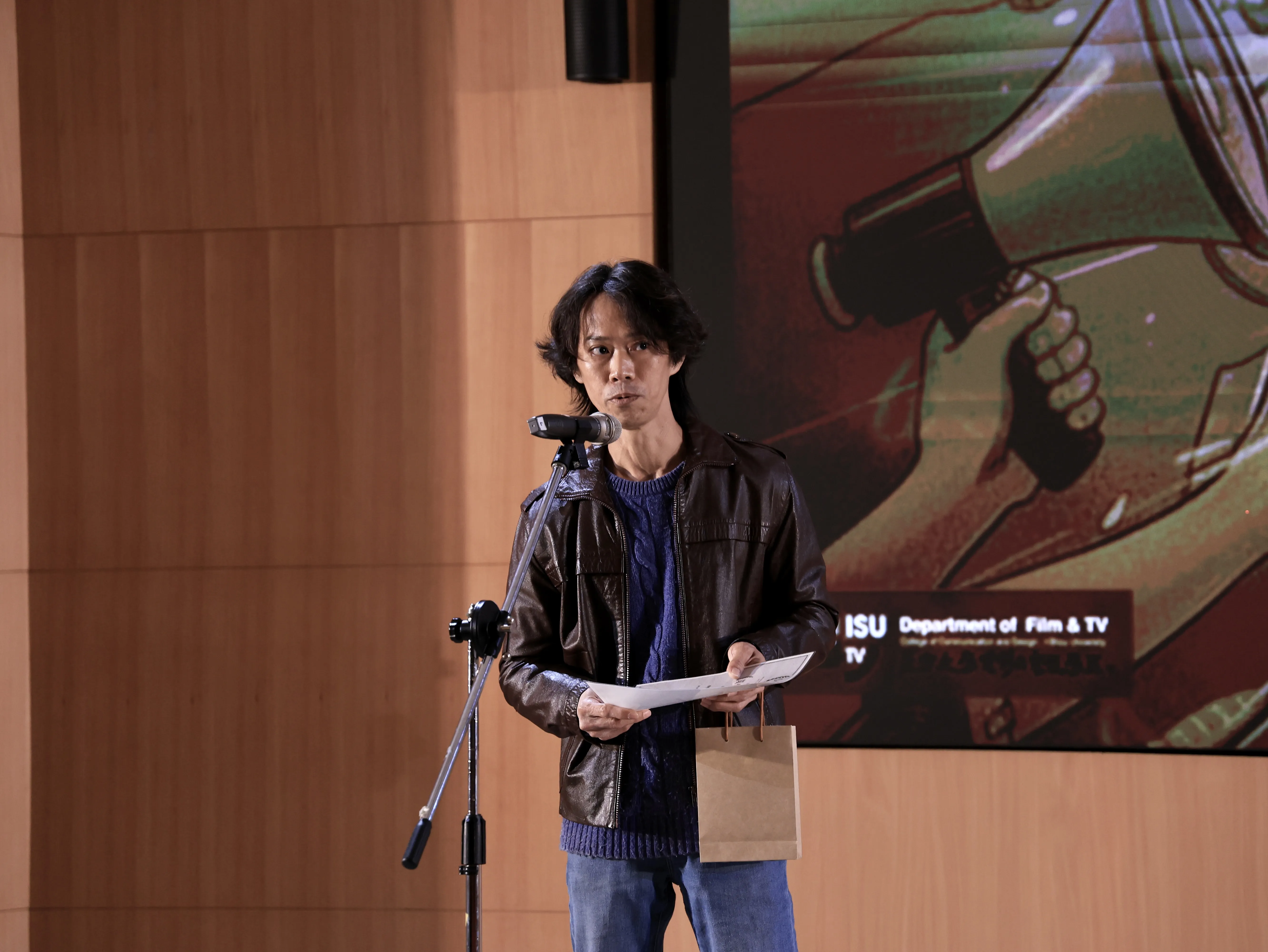 照片三、系主任李志強導演,勉勵學生勇於創作。
